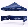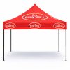 Carpa plegable con estructura metálica de tubo hexagonal con cubierta fabricada en tela impermeable. Impresión full color y/o colores planos.