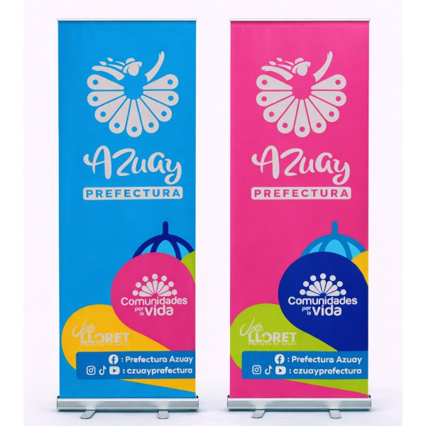 Roll up fabricado en lona impresa a full color con arte definido por el cliente. Enrollable y de fácil transportación